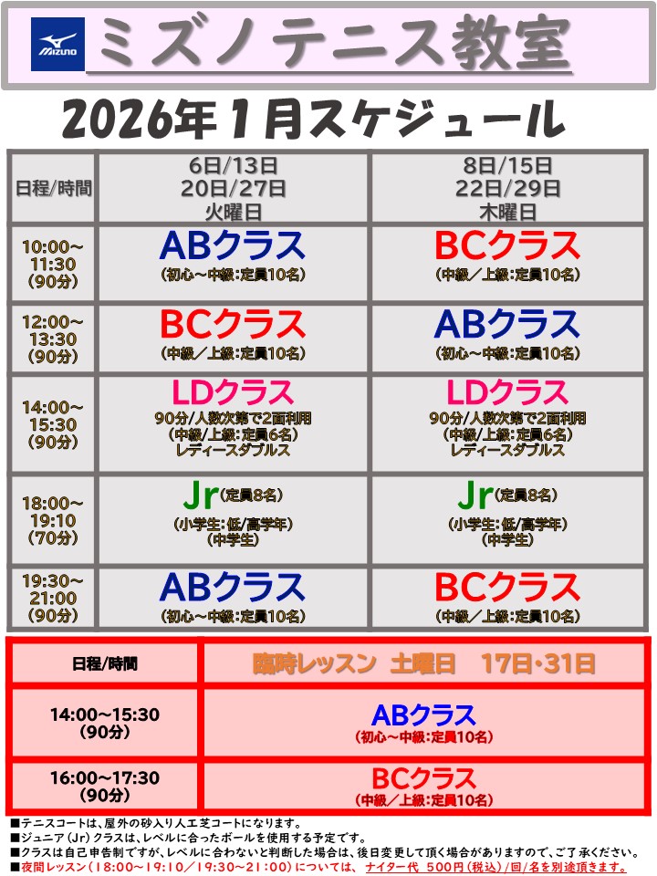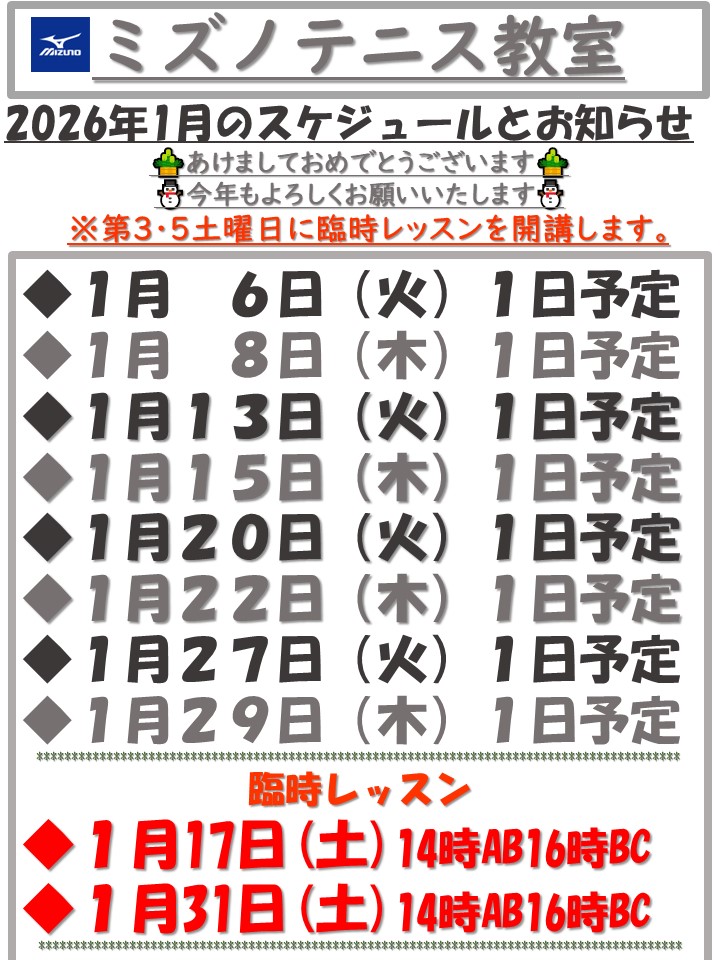 1月のレッスン情報